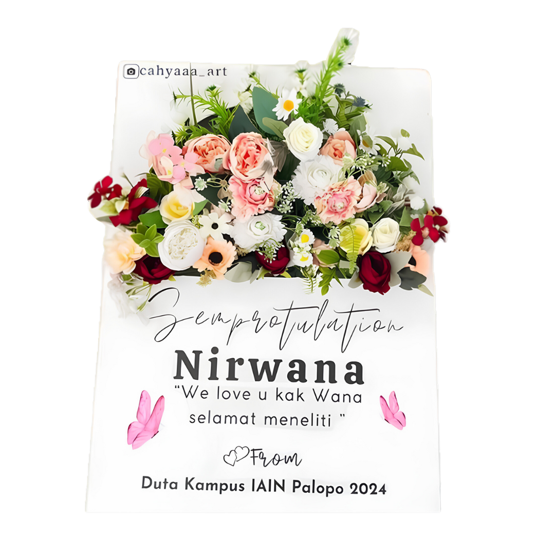 Simak testimoni dari pelanggan yang puas dengan papan akrilik bunga ucapan kami